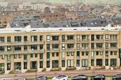 Vanuit het voorportaal op de tweede verdieping met meterkast stap je de eigen hal binnen. De woonkamer voelt licht en aangenaam aan dankzij de grote ramen met uitzicht op het groen. De afwerking is strak en consistent, met een pvc-vloer en glad gestuukte wanden in een warme, eigentijdse kleurstelling. De open keuken met inbouwapparatuur sluit hier naadloos op aan. Aangrenzend aan de woonkamer zit de slaapkamer die toegang biedt tot het balkon op het westen, een fijne plek om de dag rustig te starten.